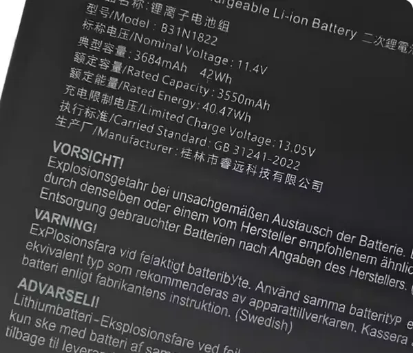 This Asus B31N1822 11.52V 42Wh Battery was made in accordance with original battery specifications, Certified by international standards, this battery offers a reliable and high-quality replacement option. Buy with confidence knowing that you're getting a product that will keep your device running smoothly.