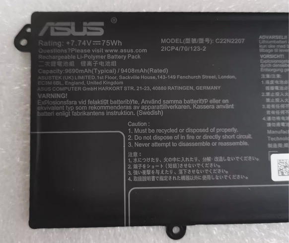 This Asus C22N2207 7.74V 75Wh Battery was made in accordance with original battery specifications, Certified by international standards, this battery offers a reliable and high-quality replacement option. Buy with confidence knowing that you're getting a product that will keep your device running smoothly.