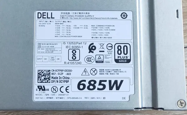 Brand new D685EF-01 685W Switching Power Supply for Dell Precision T7810 T5810 T5610 D685EF-01. All power supplies are tested by our in house technicians and they are guaranteed to function properly.