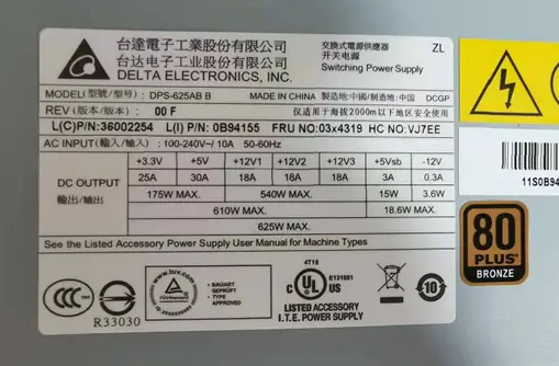 TDPS-650BB-B Delta 625-Watts Power Supply for Lenovo thinkserver TD330 TD340.
