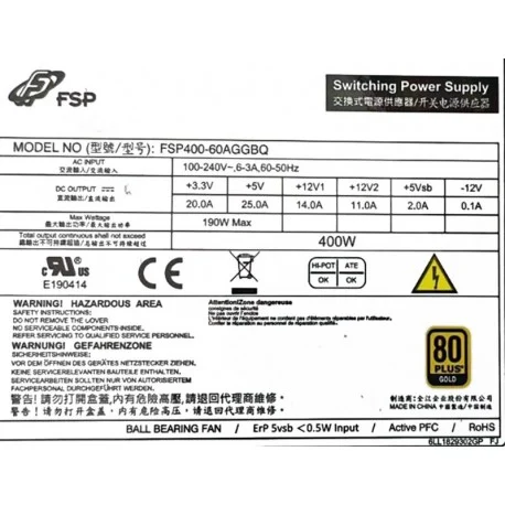 Part Number : Fsp FSP400-60AGGBQ 400W 100-240V A5E43516128