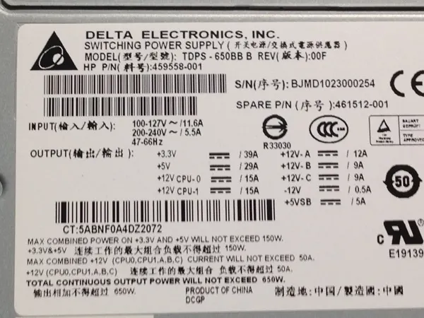 HP Proliant ML150 G5 ML150 G3 Server Power Supply PSU 650W TDPS-650BB B 407730-001 402075-001 459558-001 461512-001