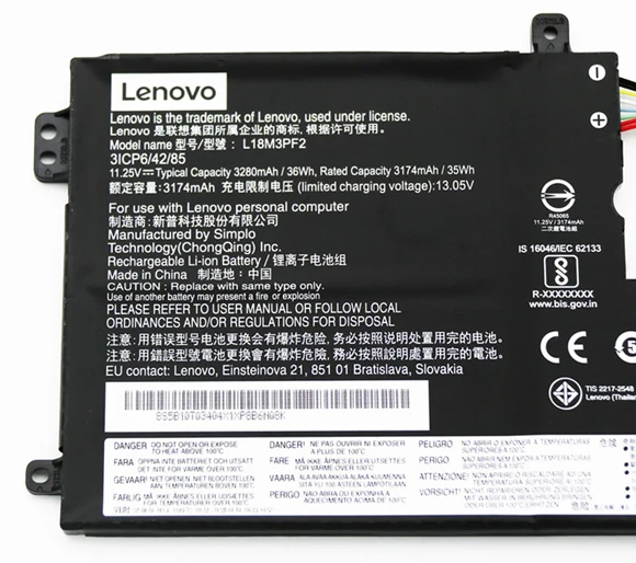 Brand new L18C3PF2 Battery For Lenovo IdeaPad L340-15IWL / L340-15API / L340-17IWL / L3-15IML05 / L3-15ITL6 . Every L18C3PF2 battery has passed factory testing, grade A cells ensure fast charges and low power consumption, built-in circuit protection ensures both safety and stability. CE / FCC / RoHS Certified for safety.